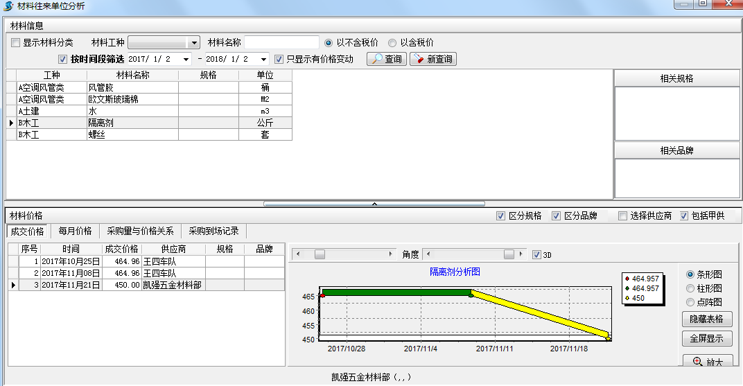 供應商信息庫、材料設備信息數據庫和價格信息數據庫是公司不可或缺的資源。然而,如何利用大量的信息來降低采購成本,反映采購部門的績效,是每個采購主管需要解決的一個緊迫問題。根據供應商在軟件中的查詢、材料交易價格分析圖、如果采購合同未到達,請在一定時間內檢查材料價格調整和采購合同執行情況,并實時提示。