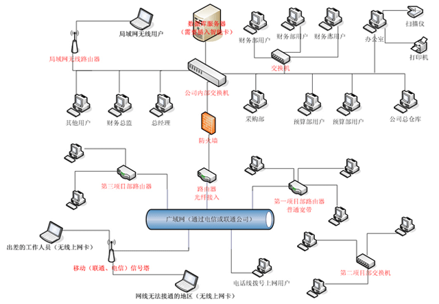 《金石建筑工地管理系統(tǒng)》在綜合了建筑企業(yè)在網(wǎng)絡(luò)辦公要求后,實結(jié)合了該公司的實際需求建立了如上圖所示的公司辦公平臺。在硬件上,使用最經(jīng)濟、性價比較高、安全性很強的設(shè)備建立既能滿足公司現(xiàn)階段需求有能符合將來一段時間內(nèi)的信息化需要的硬件設(shè)施,并為公司以后硬件及信息化發(fā)展預(yù)留充裕的空間及相關(guān)接口。在軟件上建立專門的對內(nèi)和對外的信息通道,對內(nèi)串聯(lián)公司各科室部門,對項目部進行有效監(jiān)管,并為項目部提供高效的上報及反應(yīng)通道,實現(xiàn)公司內(nèi)部的信息高速互通;對外建立公司的信息發(fā)布平臺,及時的為公司相關(guān)外來的單位發(fā)布公司及項目信息。
