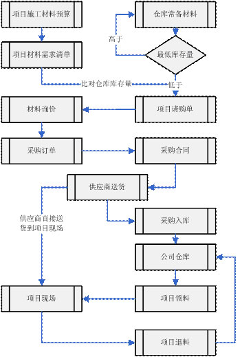 為了減少乃至杜絕這種情況的產(chǎn)生,《金石建筑工地管理系統(tǒng)》中采取了雙線控制的方案,在項目開工前,要求公司相關(guān)部門配合項目經(jīng)理及項目材料管理人員做好詳細而較為精確的材料預(yù)算,自上而下的控制材料預(yù)算;在項目施工過程中,項目部成員須嚴格的按照材料預(yù)算申請用料,做到小材采購項目經(jīng)理可以有自主權(quán),大材料必須報申請計劃。