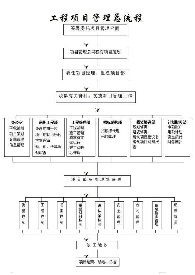 建筑項目的生產(chǎn)要素有勞動力、材料、機械設(shè)備、技術(shù)和資金,這些要素具有集合性、相關(guān)性、目的性和環(huán)境適應(yīng)性,是一種相互結(jié)合的立體多維的關(guān)系,這就說明項目的實現(xiàn)是一個具有系統(tǒng)性的施工過程。建筑項目管理具有系統(tǒng)管理的特點。加強項目管理,必須對施工項目的生產(chǎn)要素詳細分析,認真研究并強化其管理。金石建筑工地管理系統(tǒng)著眼于建筑施工項目中的各種重要環(huán)節(jié)有效管理,既考慮到對單個項目中各種生產(chǎn)因素的管理,又考慮到建筑企業(yè)管理過程中對公司有限資源的統(tǒng)籌安排及有效利用。下文就以山東宏太為例,簡單介紹針對建筑施工企業(yè)項目管理的特點,以及如何建立完善、高效的項目管理信息化系統(tǒng)。 該公司項目管理總流程如下圖: