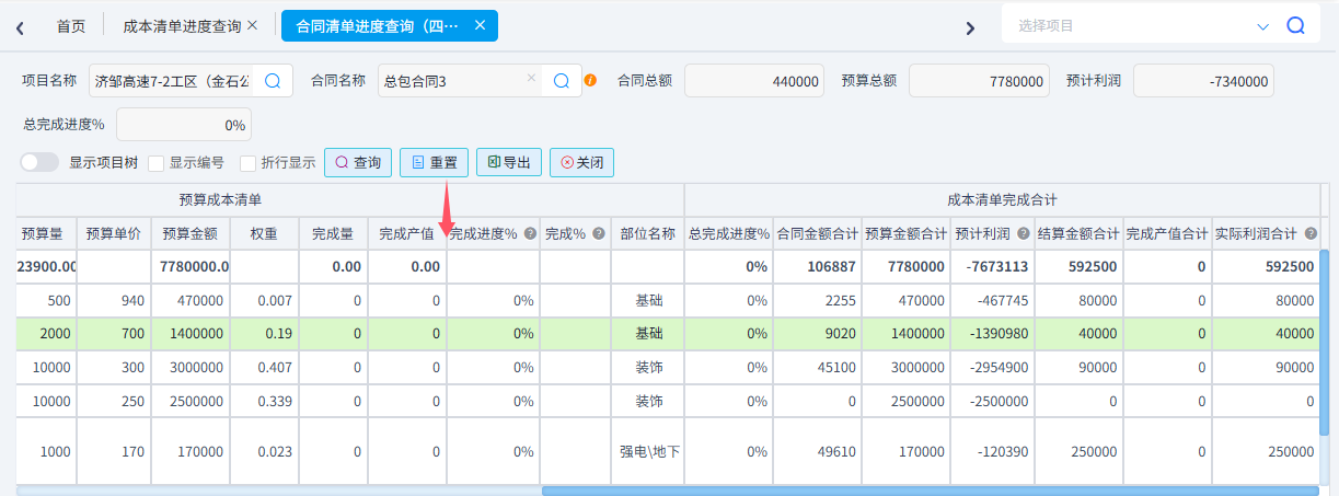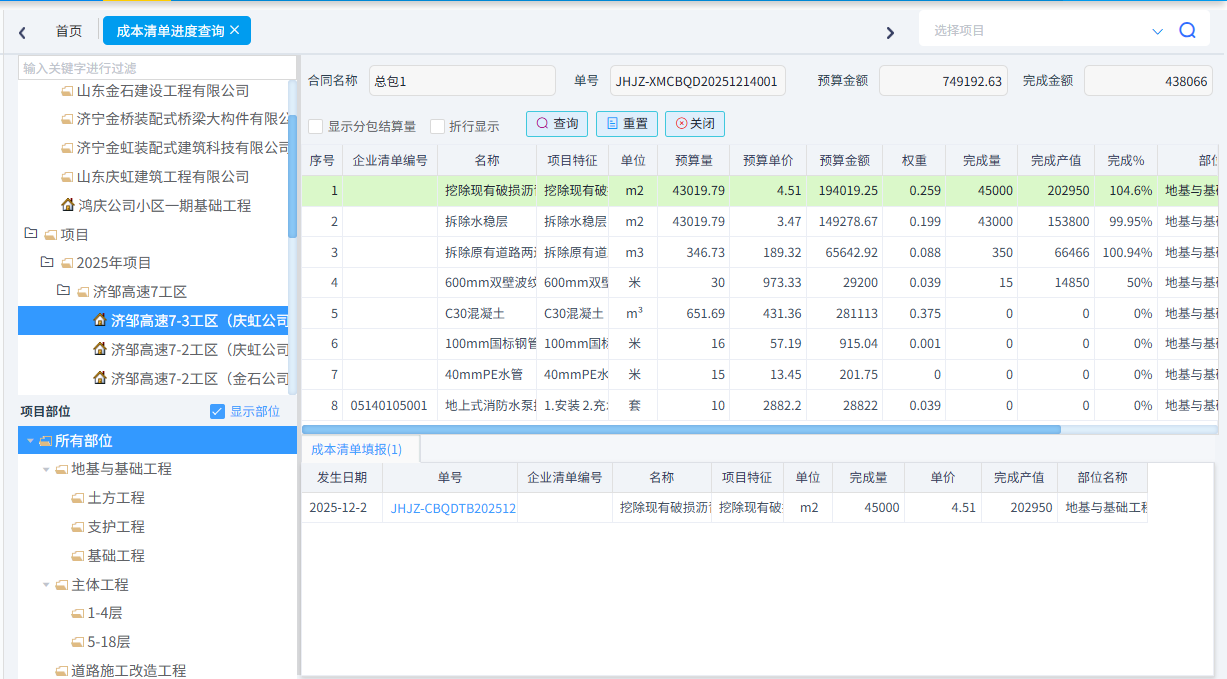 可以根據(jù)需求統(tǒng)計成本清單進度、合同清單進度(四算對比)、項目部位實際發(fā)生以及部位分解預算與實際發(fā)生。
