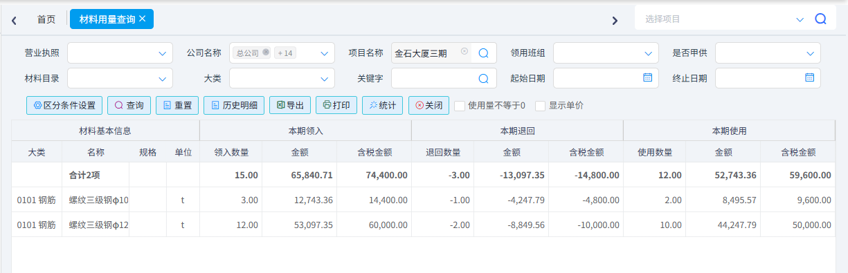 是用于查詢工地材料用量??梢园凑諣I業執照、公司、項目、班組、材料名稱、時間等篩選材料用量信息